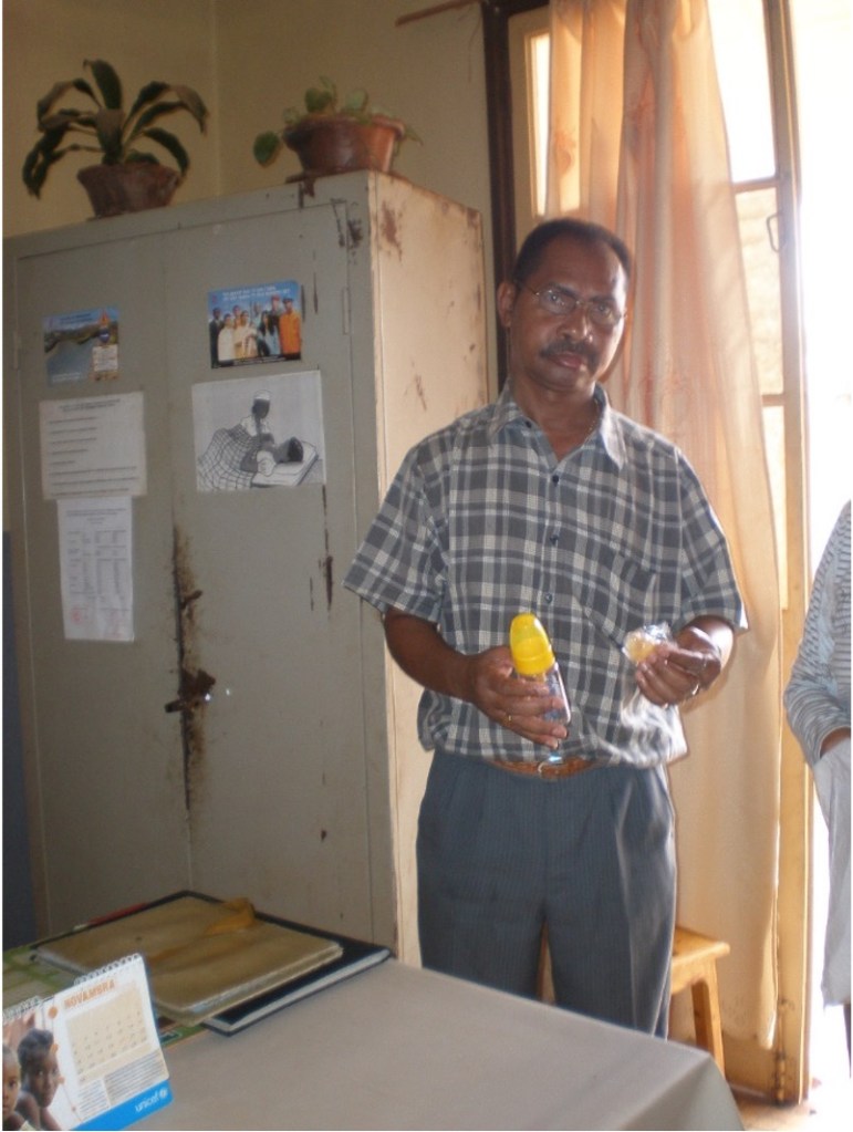 - Le docteur Costa a gardé un biberon pour s’en servir de doseur. En effet, il n’y a pas de doseur dans cet hôpital et il est obligé de se servir d’une seringue pour doser ces préparations.