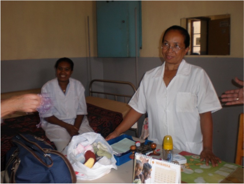 - Remise de médicaments, chaussons, biberons. Les biberons sont donnés à la maternité aux mamans qui ne peuvent allaiter, exemple pour les enfants ayant un bec de lièvre.
