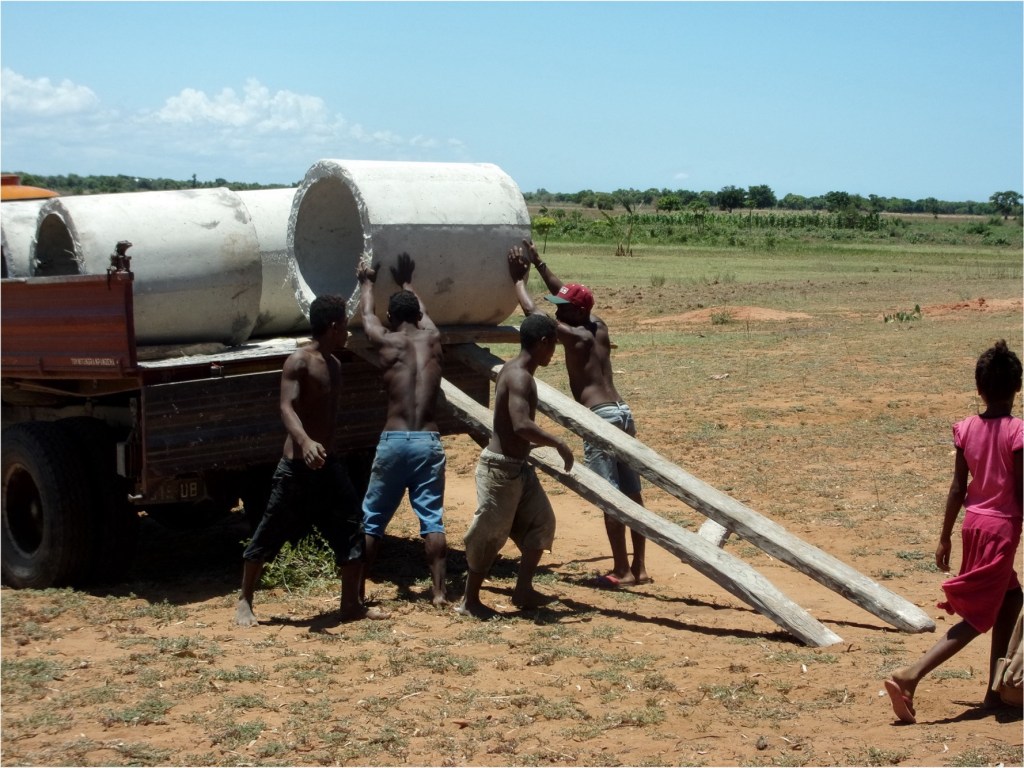 En janvier 2016, suite à la signature du protocole d’accord signé en décembre 2015 avec le chef du quartier, début des travaux de la construction du puits à AMPANILIA, au sud de l’île.