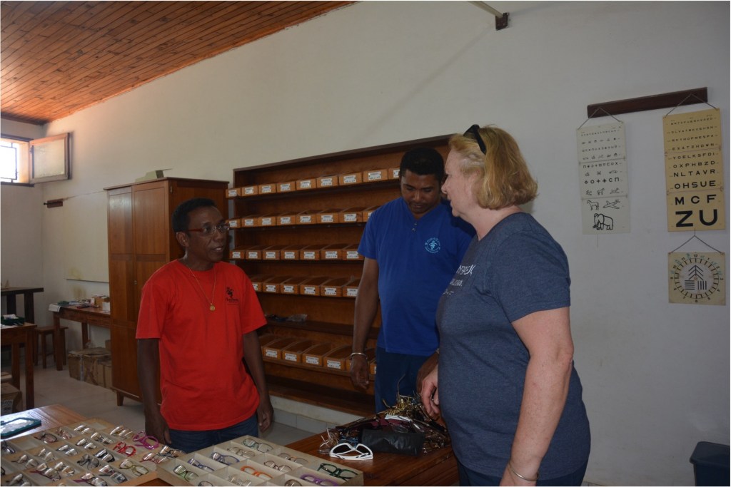 Don de lunettes à la lunetterie de Tuléar.
