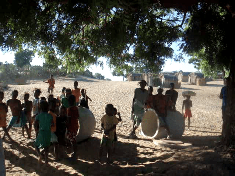 Implantation d’un puits à Ankilifolo, village de 1 000 habitants à 5 km de Tuléar. Fournitures de buses, d’un couvercle, de sacs de ciment, de cordes, de caillasse et de sable. On a fourni aussi un sac de riz pour les travailleurs et du rhum pour la bénédiction du puits !
