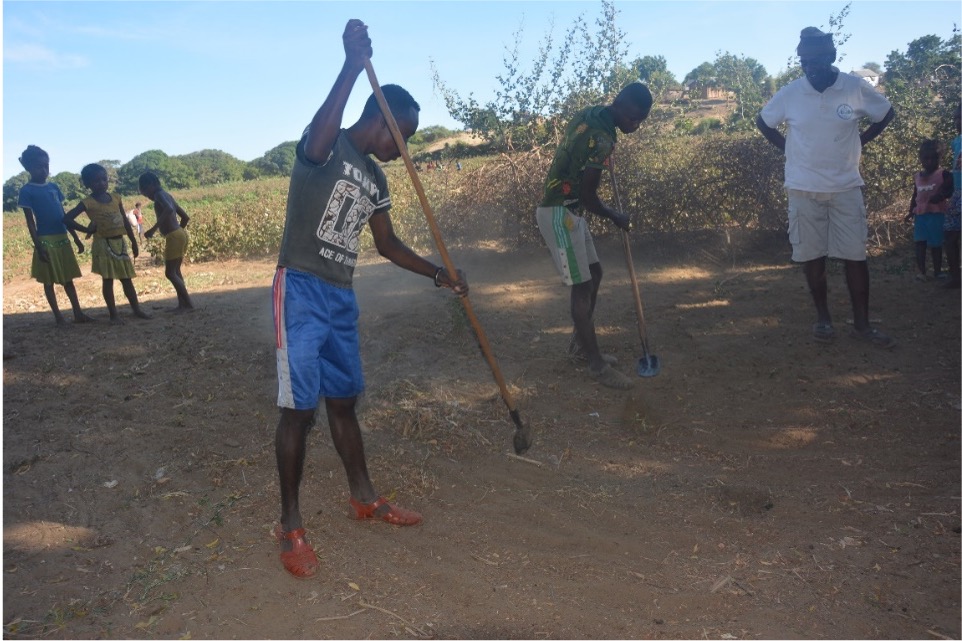 Reconstruction de la réserve d’eau à Angovorostsa dit « Antenne télévision » après le coup de vent et les pluies diluviennes de la fin d’année 2017 (village de Betsinefo).