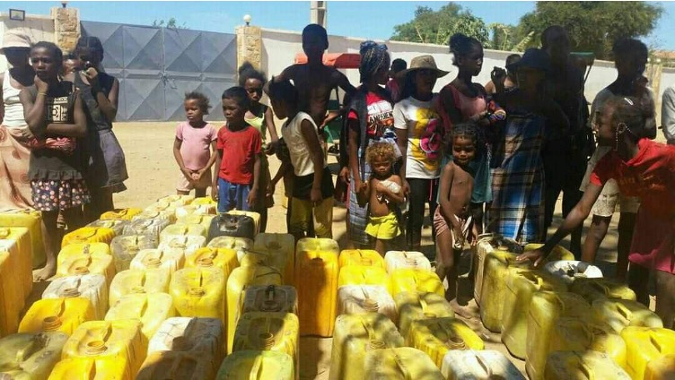 Distribution d’eau du fait de la sécheresse à l’aide d’un camion de Pompier dans 2 villages : Tanandava et Andalavy. Nous avons payé le gasoil et l’eau.