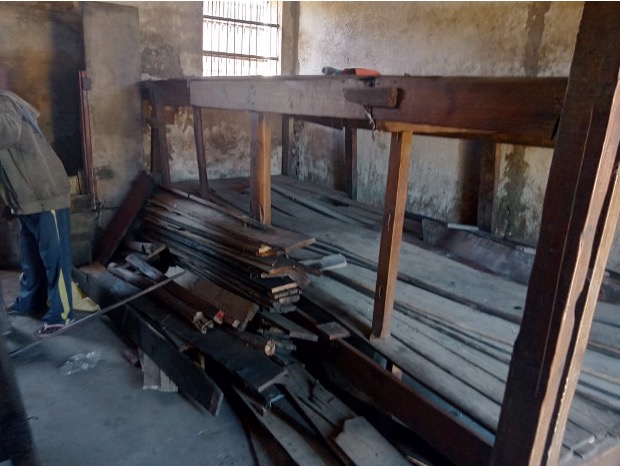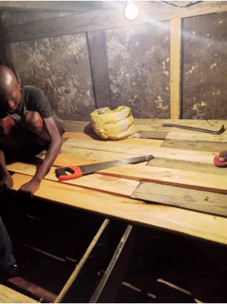 Réhabilitation d’une chambre pour 85 prisonniers à la prison de Tuléar : achat de planches de bois, chevrons, pointes pour les baflans (ou bat-flanc : c’est un plancher surélevé et incliné servant de lit dans les prisons, caserne…), mise en place de la chaux sur les murs.